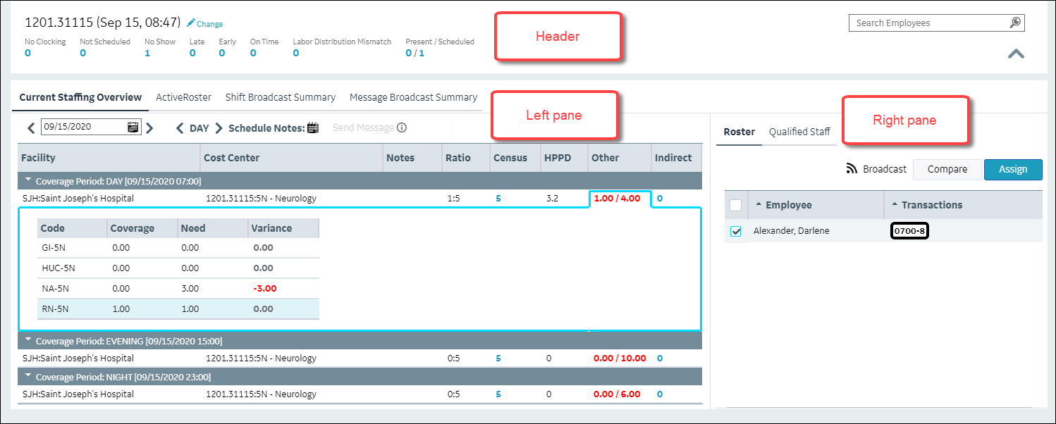 The Current Staffing Overview provides essential information that enables schedulers to:
