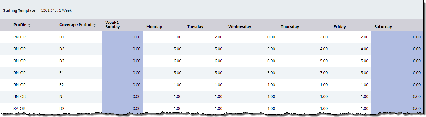 On the Staffing Template screen, you create templates that indicate the baseline staffing levels needed for each organization unit. These staffing needs are set up for each combination of profile and coverage period. A Staffing Template states, for example, that the ICU needs seven RNs every Sunday during a Day coverage period.
